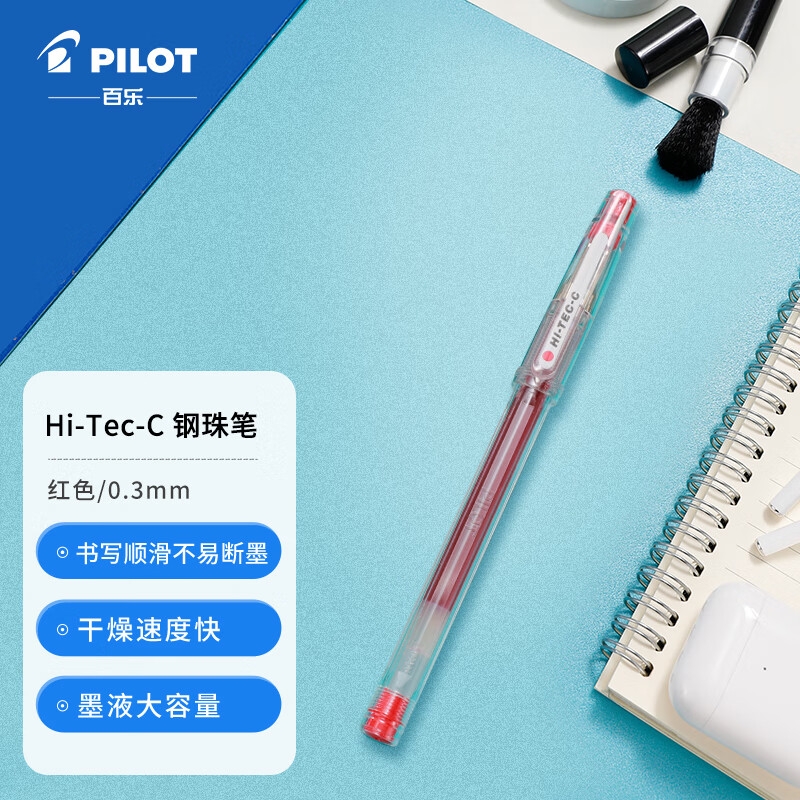 百乐(PILOT)针管式超细钢珠中性笔啫喱笔 0.3mm 单支 BLLH-20C3 日本原装进口 红色