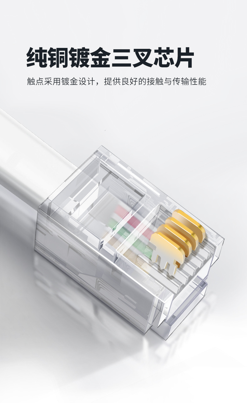 通用 座机电话线2芯4芯延长线成品电话跳线四芯室外固话电话机连接线 5米