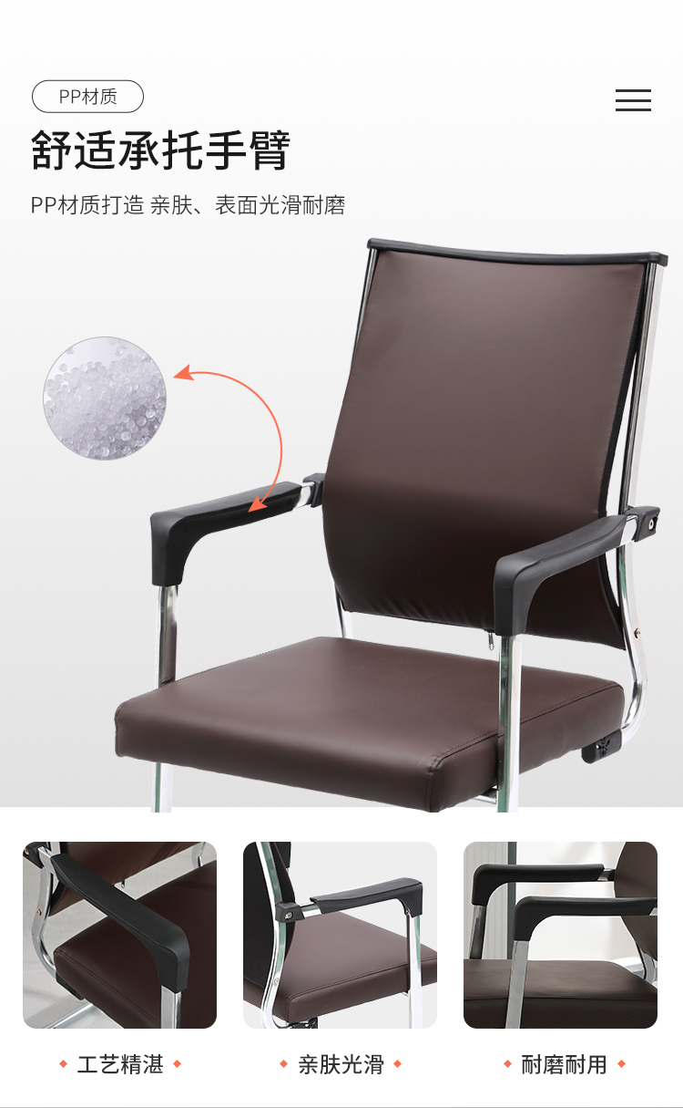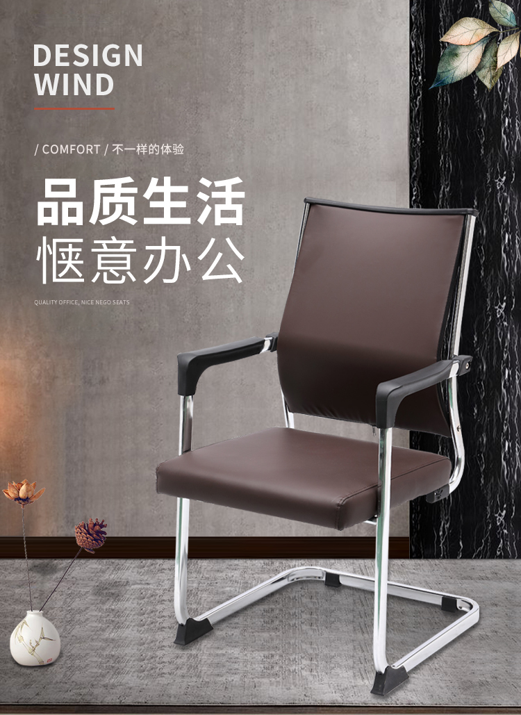 814C 商务办公椅皮质电脑椅家用弓形脚人体工学椅会议椅会客椅(仿皮)红色
