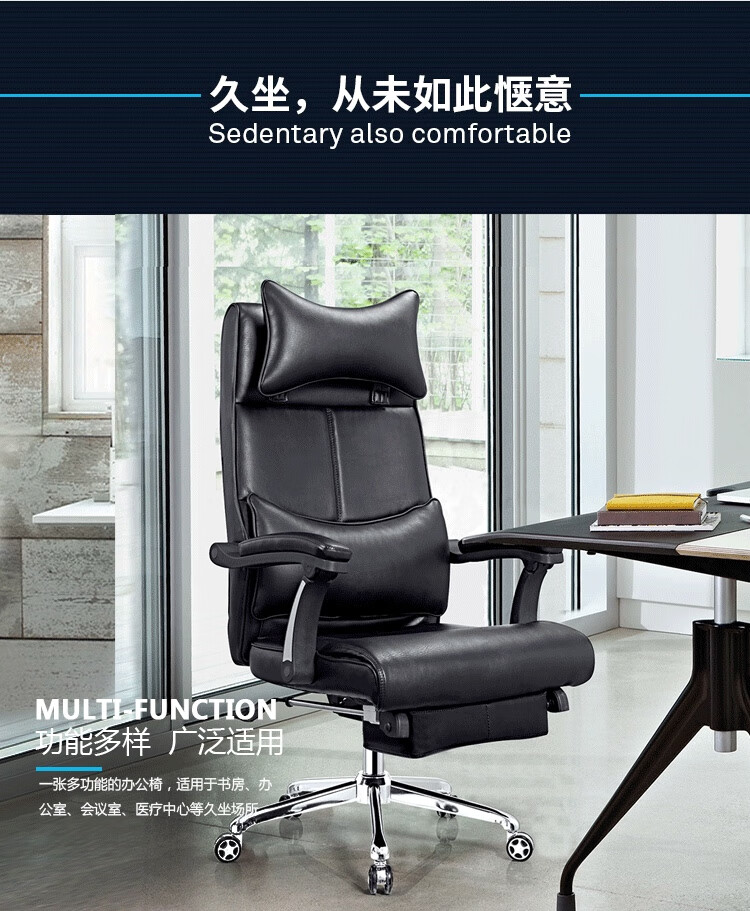 F037 商务中班椅人体工学椅老板办公椅电脑椅舒适久坐家用转椅靠背椅(西皮)黑色