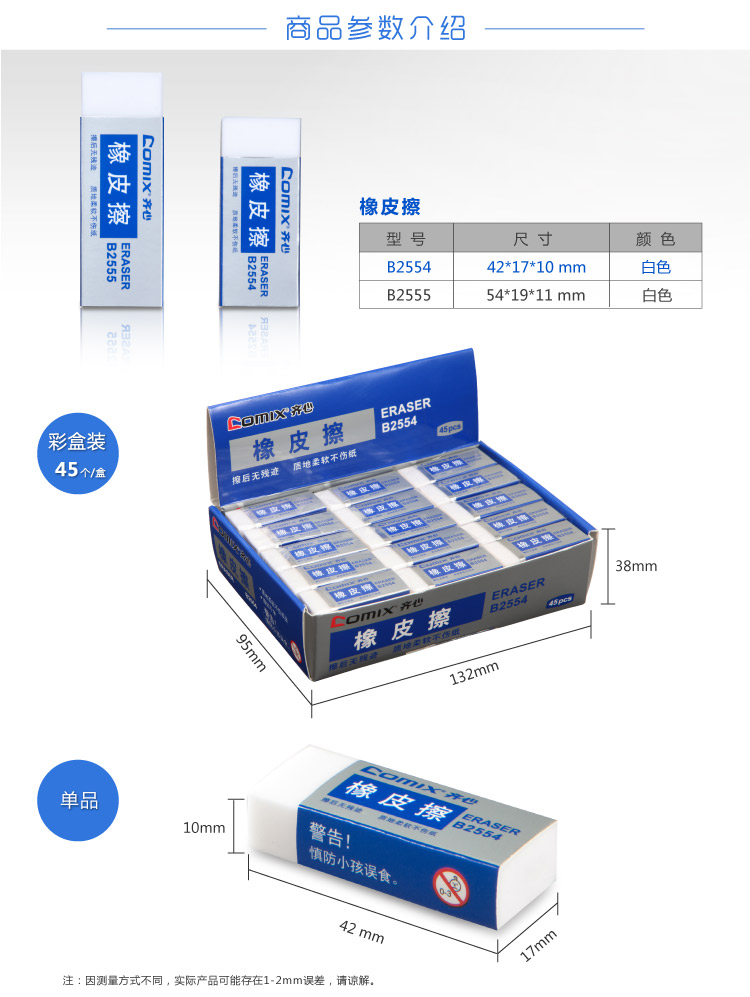 齐心 B2554 橡皮擦 42*17*10mm