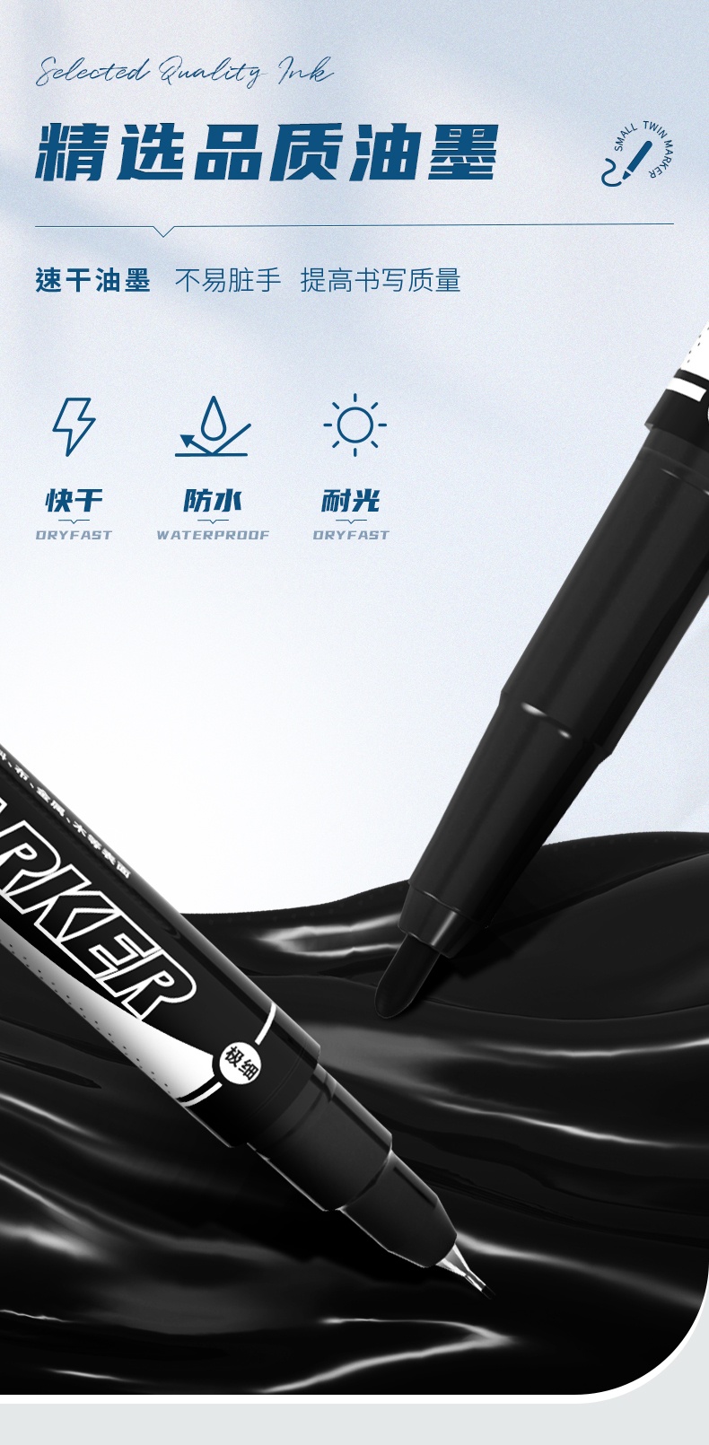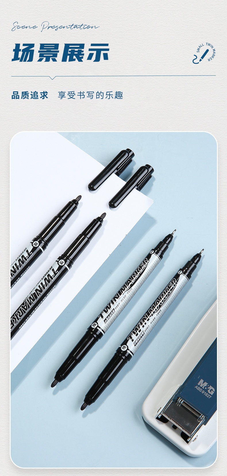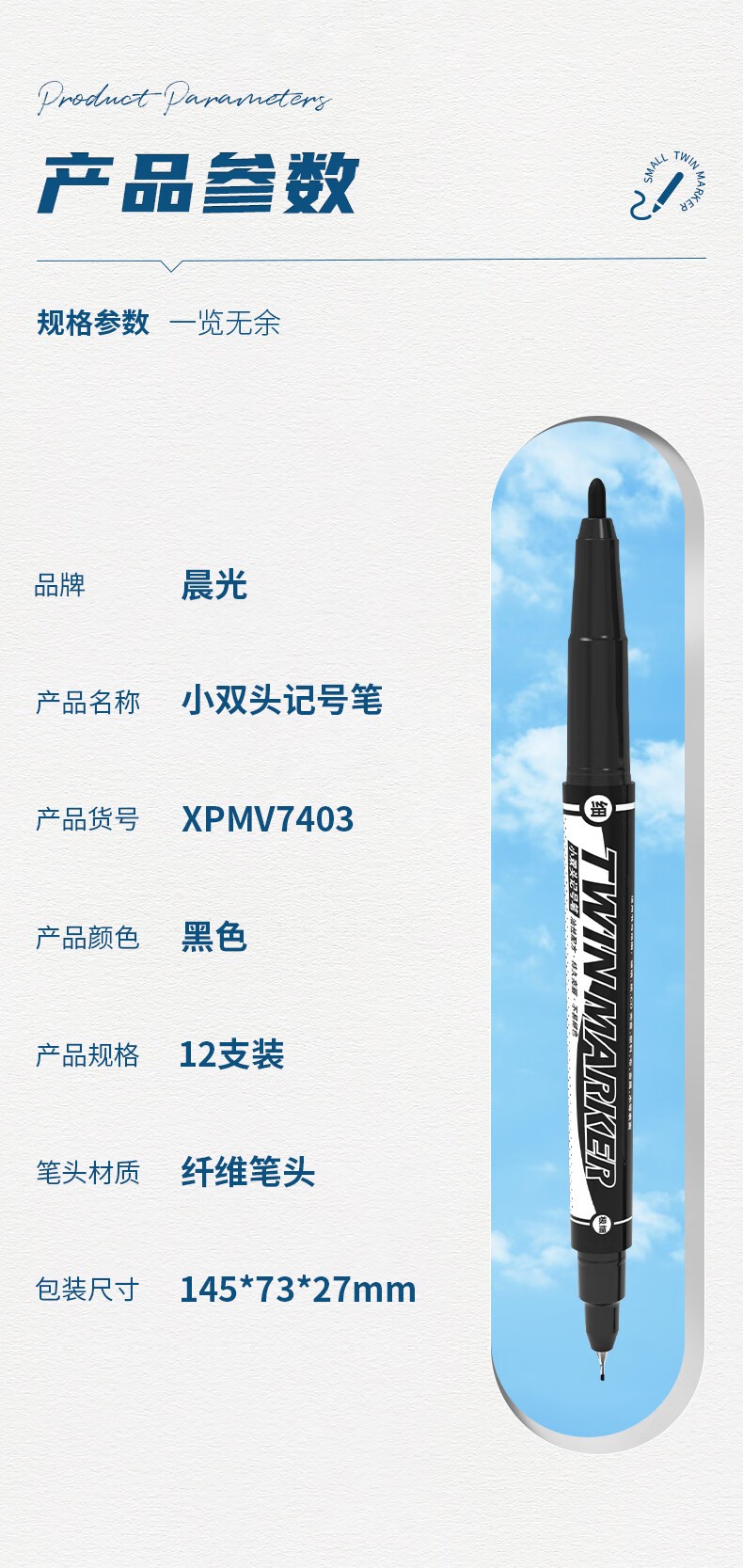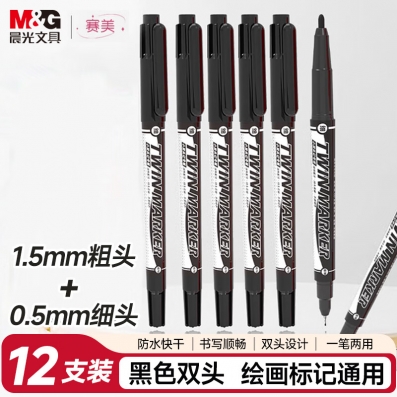 晨光 XPMV7403 小双头记号笔 (黑)12支