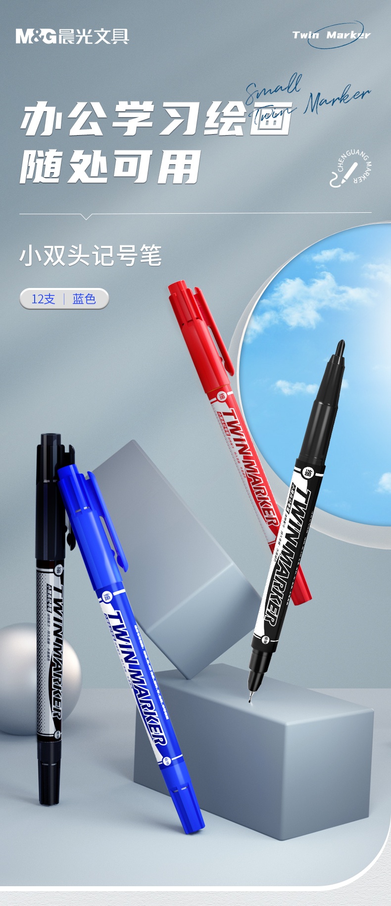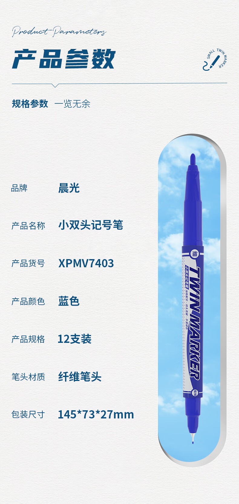 晨光 XPMV7403 小双头记号笔 (蓝)12支