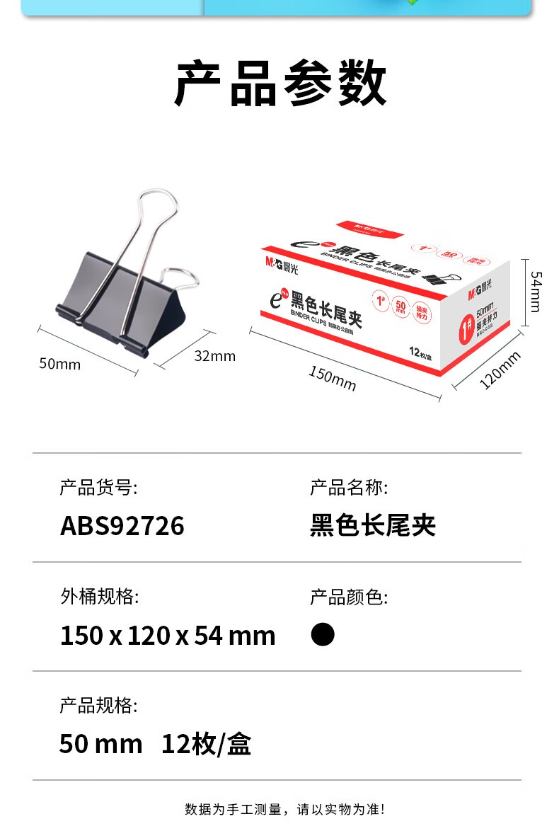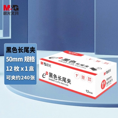 晨光ABS92726 Eplus盒装黑色长尾夹 燕尾夹 50mm 12个/盒
