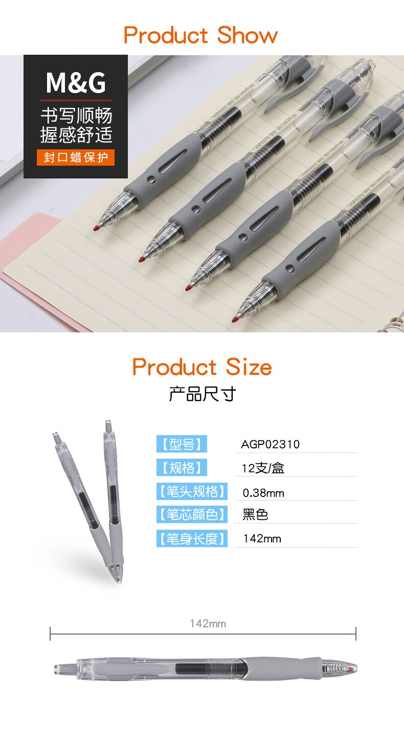 晨光按压中性笔AGP02310 0.38mm(黑色)12支