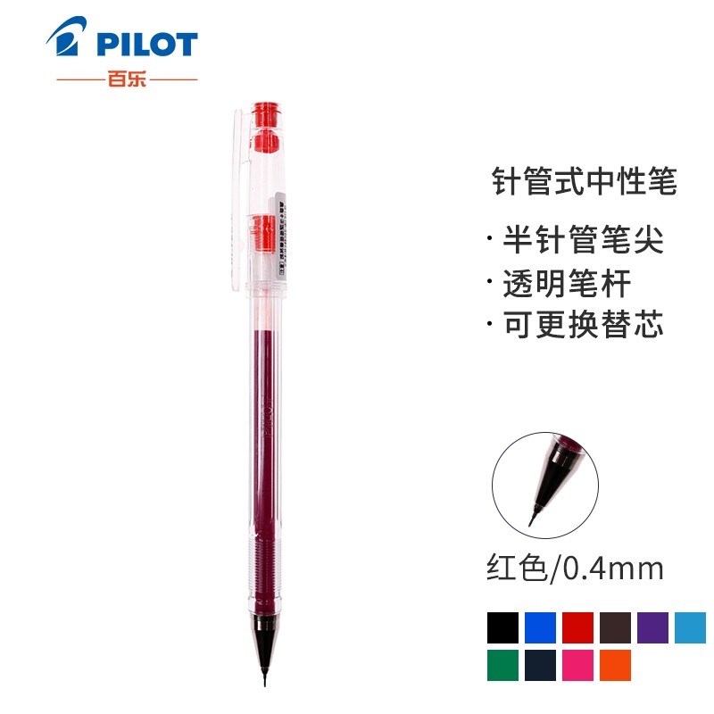 百乐(PILOT)针管式超细钢珠中性笔啫喱笔 0.4mm 单支 BLLH-20C4 日本原装进口 红色