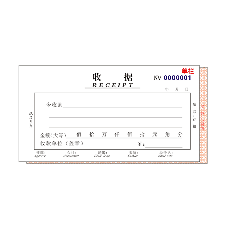 主力 0501 48K二联单栏收据两联 收款收据 无碳复写收据自带垫板 单本