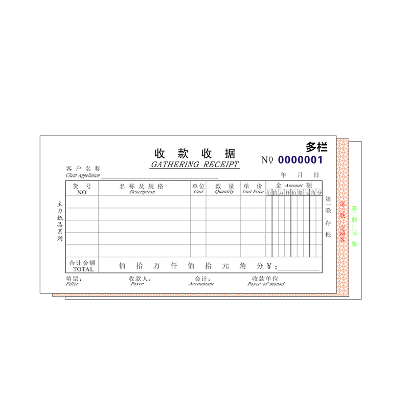 主力 收款收据 无碳复写收据自带垫板 0504 48K三联多栏 单本