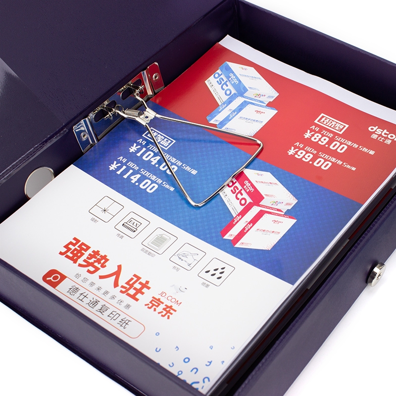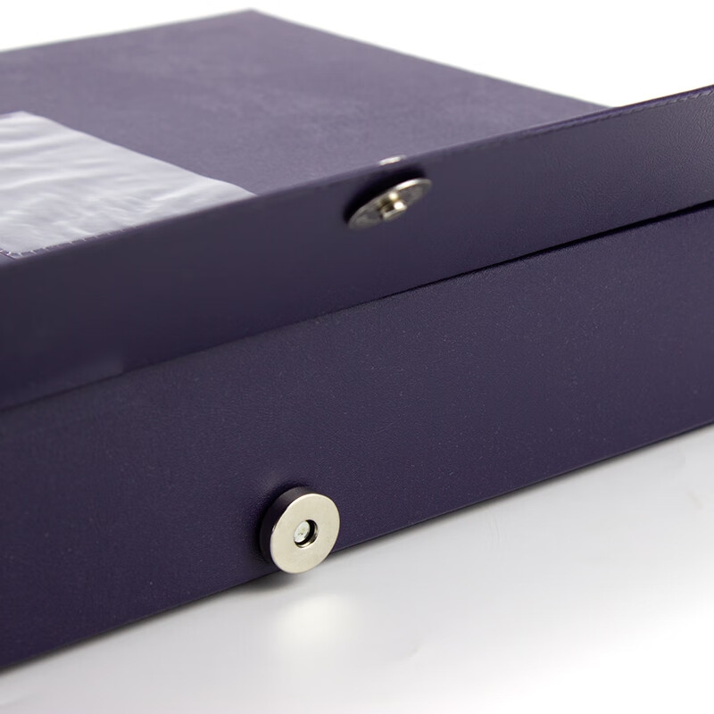德仕通 A4加厚型档案盒 PVC文件盒磁扣财务凭证加厚纸板党建资料盒 财务票据皮革纹纽扣夹子收纳盒 深蓝813A有夹320*238*55mm-单个装