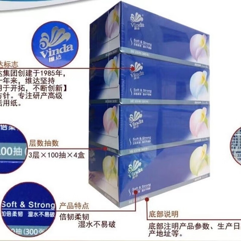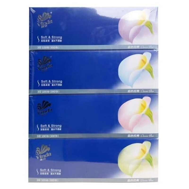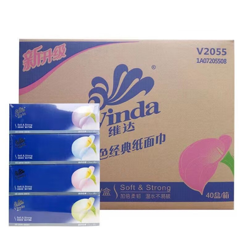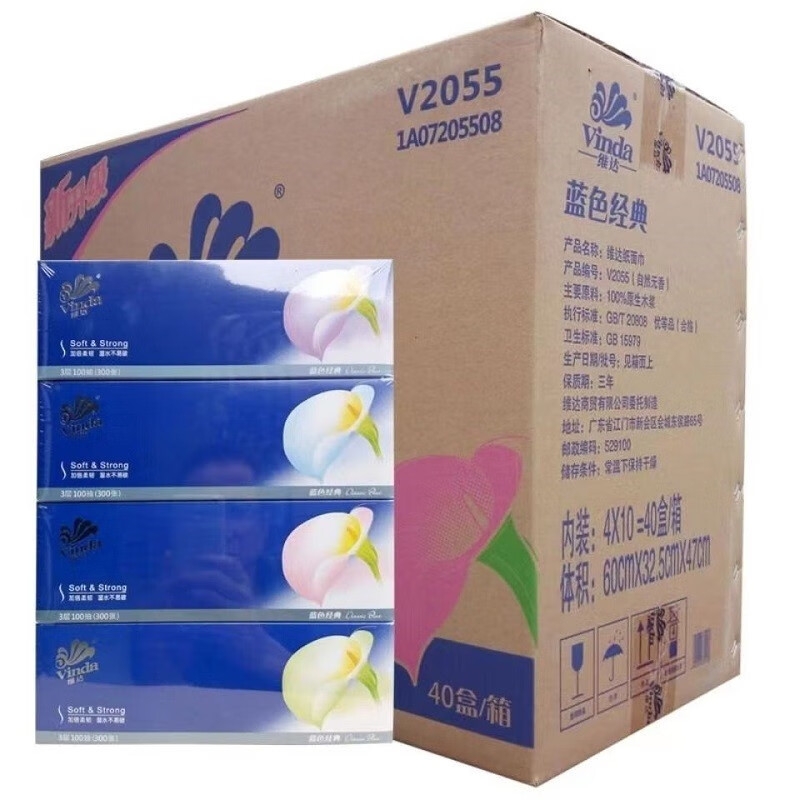 维达V2055 蓝色经典盒装抽纸(无香)190*195mm 100抽*4盒/提