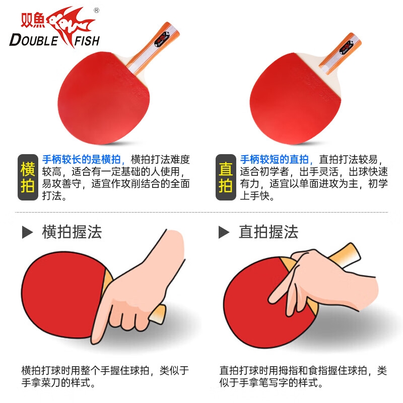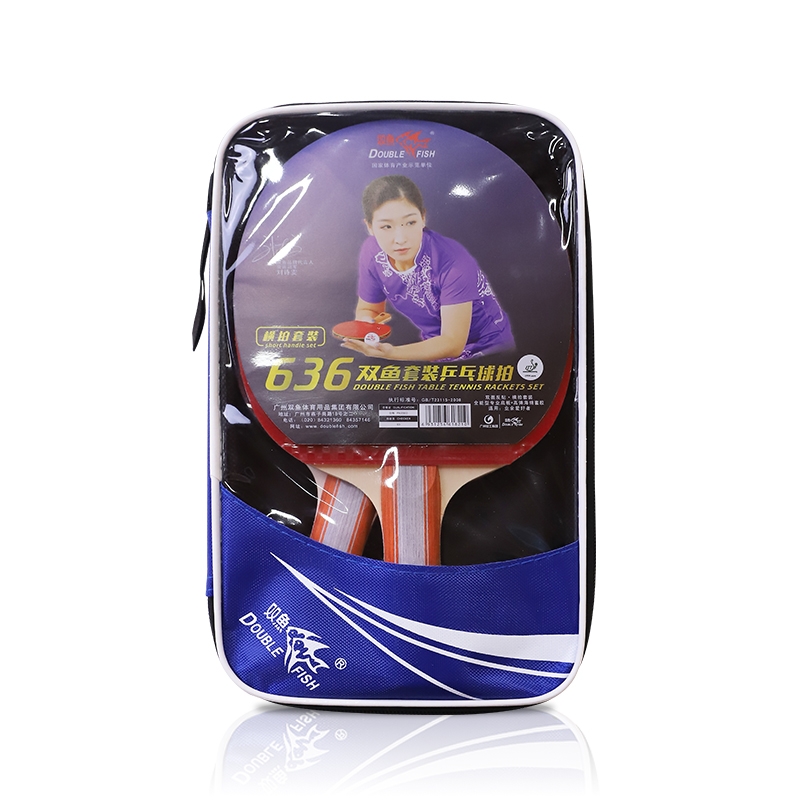 双鱼(DOUBLE FISH) 乒乓球拍双面反胶皮训练乒乓拍 横拍 636 双横长柄