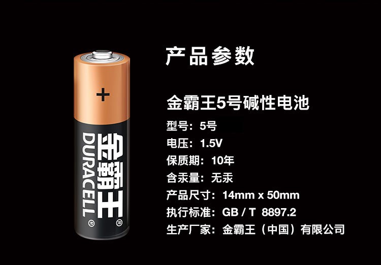 金霸王电池5号 6个/排 独立卡装 1粒